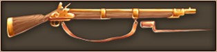 ![]() | ポツダム マスケット ブランデンブルグ武器学校の傑作。 強力で重量感のあるマスケット銃で 接近戦において絶大な威力を発揮するが、 その重量のため、照準が難しい。 | 銅貨×70 | 50% | 命中-15 防御+15 近ダメ+25 回避-5 | 〇 | 〇 | |||||||